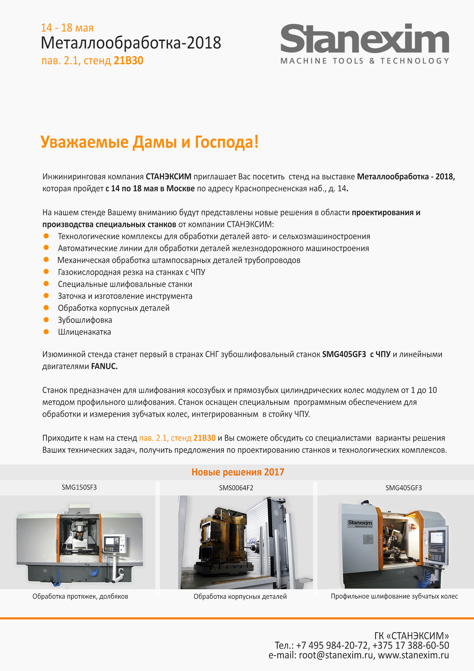 Приглашаем на выставку «Металлообработка-2018» в Москве